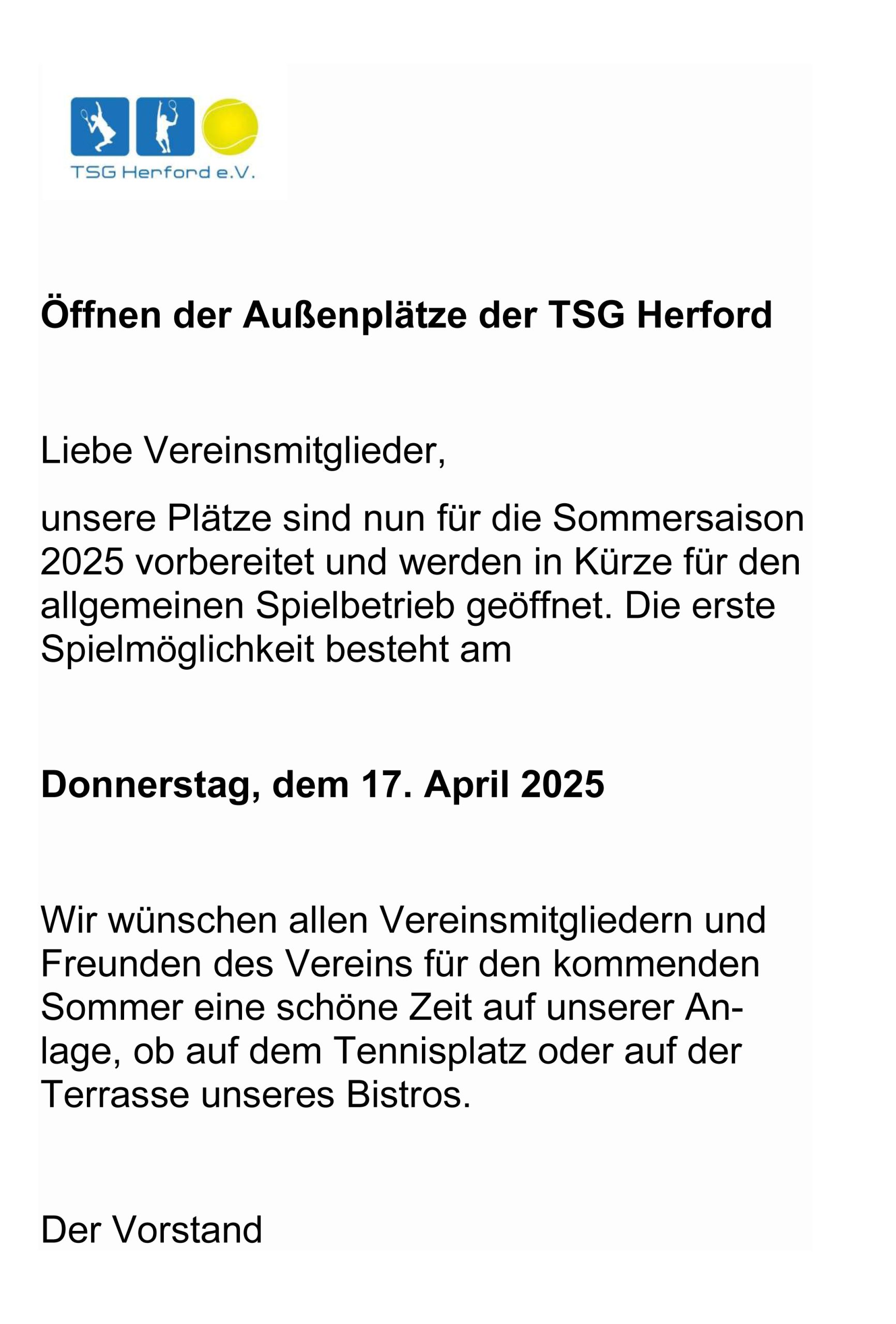 Weitere Informationen rund um den Verein, die Tennisschule sowie kommende Veranstaltungen finden Interessierte auf den Webseiten www.tsg-herford.de und www.tennisschule-sergej-koenig.de.
